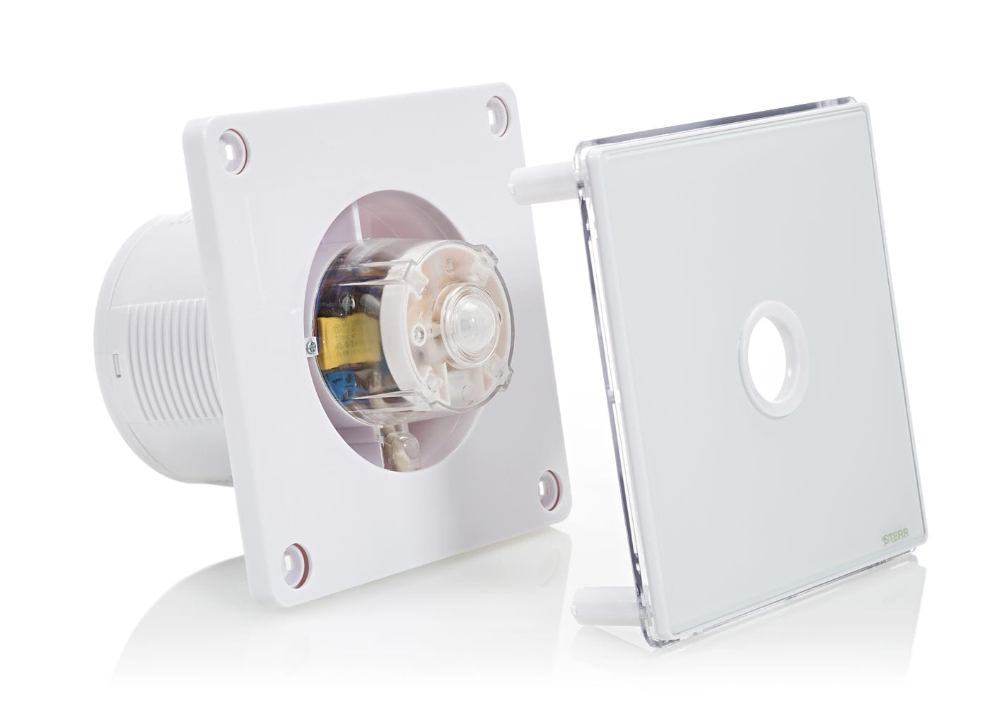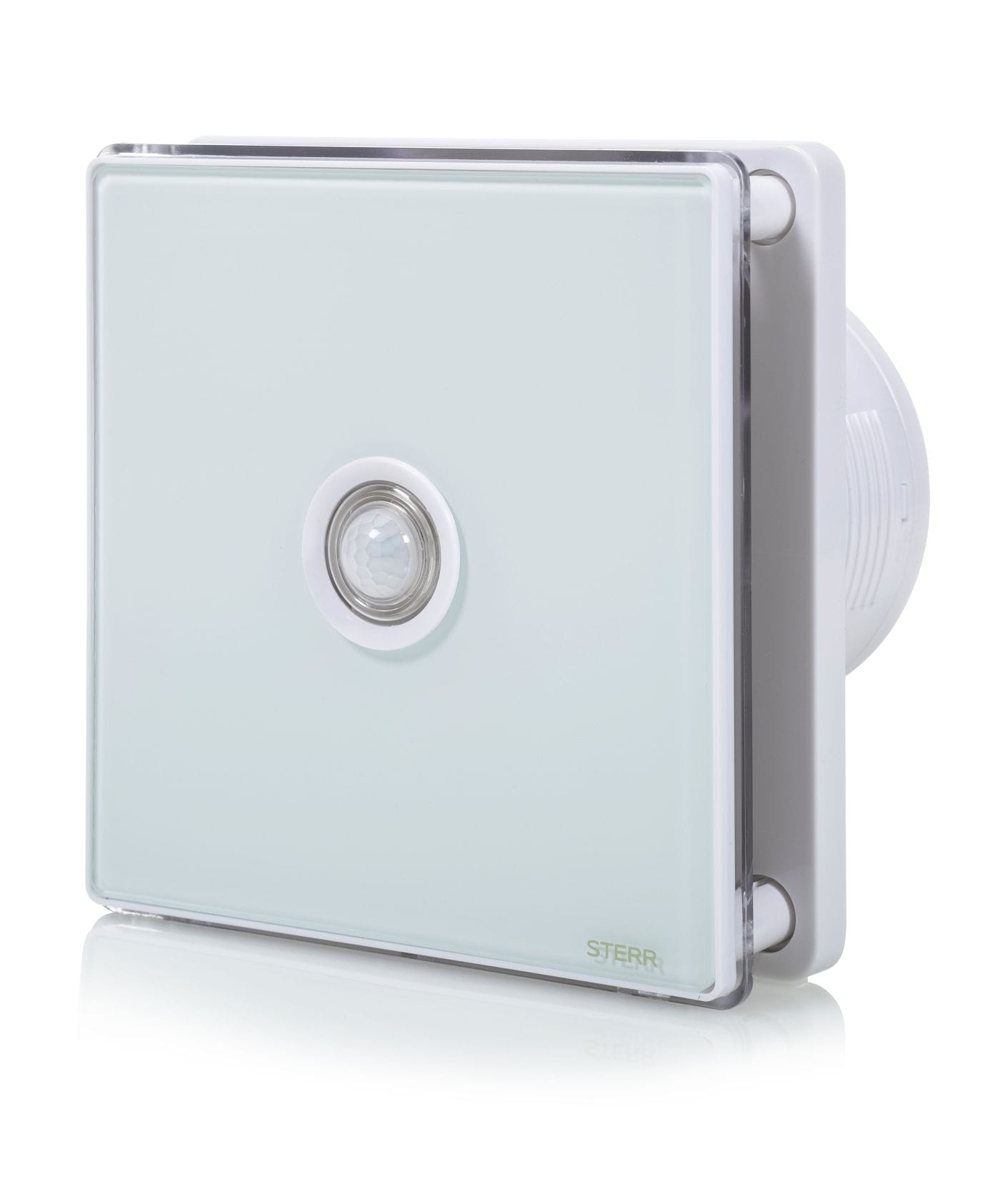 STERR BFS 100 LP- Wentylator łazienkowy z czujnikiem ruchu, fi 100, biały ze szklanym panelem i podświetleniem LED