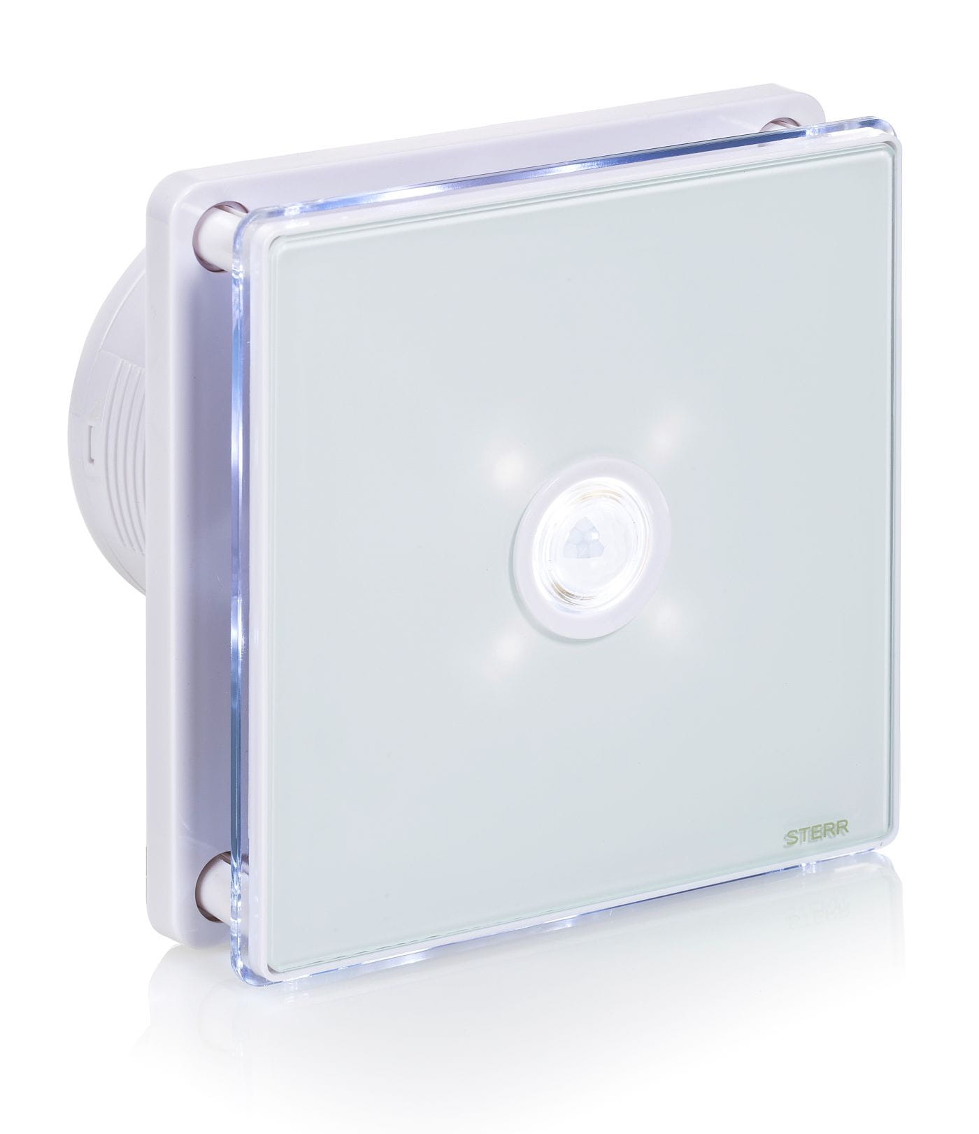 Wentylator STERR - BFS 100LP ze szklanym panelem przednim, podświetleniem LED i czujnikiem ruchu