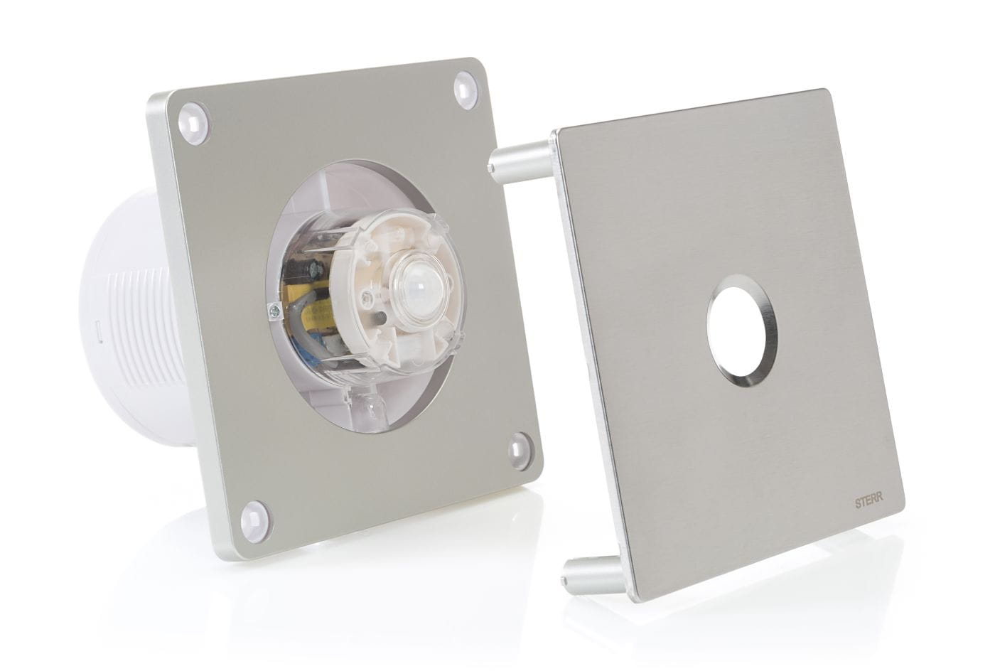 STERR BFS 100P-S - Wentylator łazienkowy z czujnikiem ruchu, fi 100, INOX z panelem ze stali nierdzewnej
