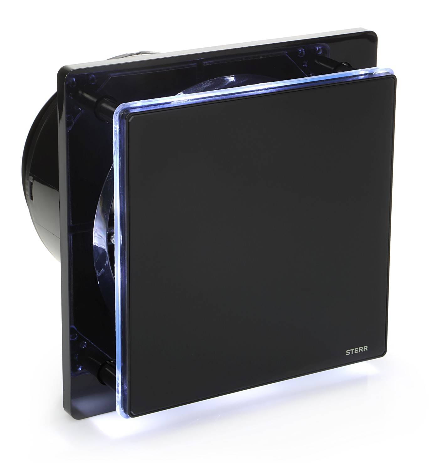 STERR BFS 125 LT-B - Wentylator łazienkowy z timerem , fi 125, czarny ze szklanym panelem i podświetleniem LED