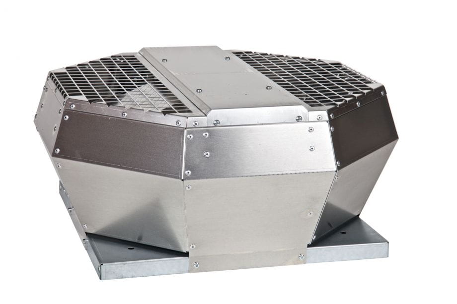 Dachowy wentylator promieniowy z wyrzutem pionowym z silnikiem umieszczonym w strumieniu przepływającego powietrza. Obudowa (boczna i górna) została wykonana z wysokiej jakości niekorodującego stopu aluminium odpornego na działanie czynników atmosferycznych (AlMg3) i składa się z nisko profilowanej osłony w kształcie ośmiokąta z siatką. Całość została umieszczona na kwadratowej płycie montażowej wykonanej z galwanizowanej blachy stalowej. Konstrukcja wentylatora umożliwia montaż na podstawie dachowej lub cokole murowanym o przekroju kwadratowym. Wokół profilowanego wlotu do wirnika umieszczone zostały króćce gwintowane umożliwiajace montaż akcesoriów dachowych takich jak: króćce, klapy zwrotne czy złącza przeciwdragniowe.