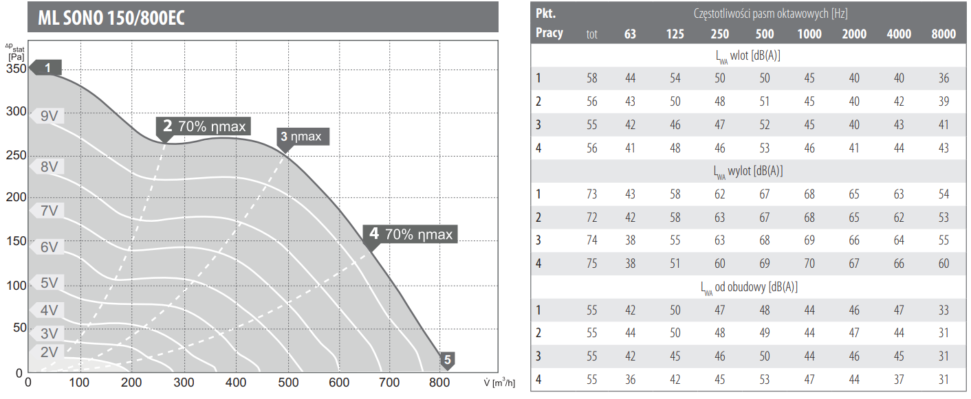 Wentylatory ML SONO EC wyposażone zostały w nowoczesne silniki komutowane elektronicznie (EC). Ich niewątpliwą zaletą jest: niski pobór energii, płynna i precyzyjna regulacja prędkości obrotowej w pełnym zakresie przy zachowaniu wysokiej efektywności, miękki start, cicha praca.