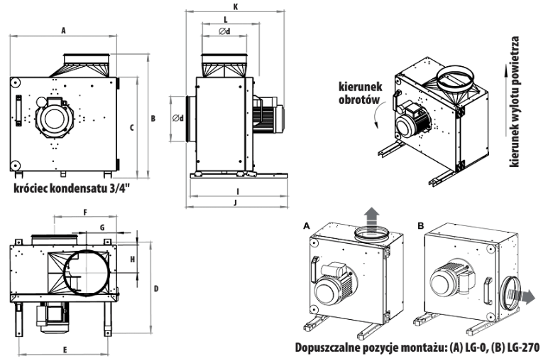 - konstrukcja ułatwiająca odpływ skroplin z wnętrza wentylatora