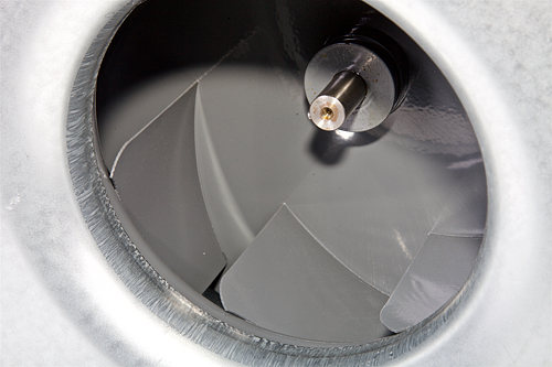 Wirnik nowej generacji wyważony dynamicznie w klasie G2.5, typu B - z łopatkami pochylonymi do tyłu, wykonany z blachy stalowej malowanej proszkowo.